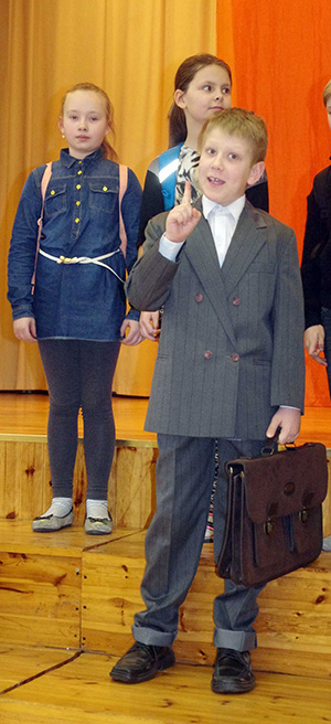 Bondartšuki Stefan (tarkusõkivvega kauplõja Ants Puiga kooli näütemängun «Tarkusõ kivi»). Harju Ülle pilt