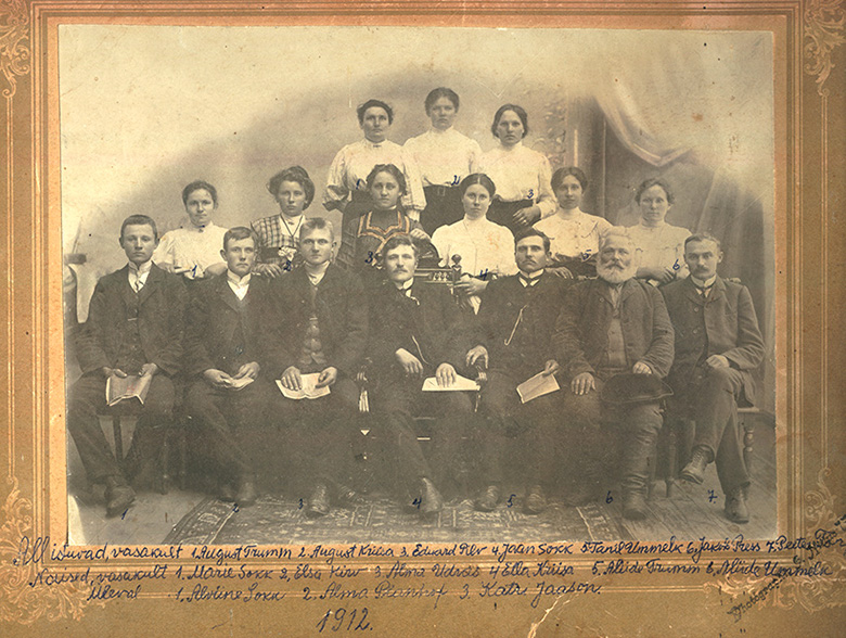 Täämbäne pilt om tettü 1912 seldsi laulukoorist. Pildi om tennü Võro piltnik Niilusõ Jaan. Kiäki om kirotanu pildi mano pildi pääl olõjidõ nime ja ka pildi pääl olõjilõ numbri mano pandnu.