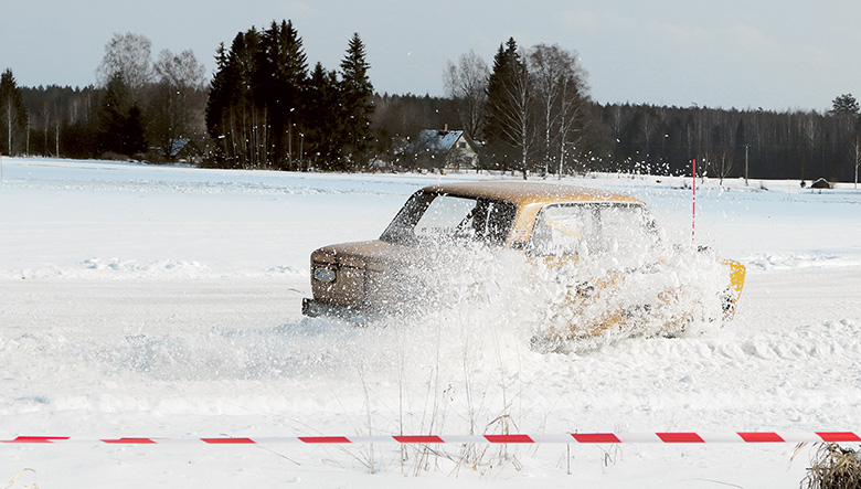 Auto võistlõsõ ijäst raa pääl, mõnõn kurvõn libises perä- vai edeots raa viirde ja sis lindas kõvastõ lummõ. Rahmani Jani pilt