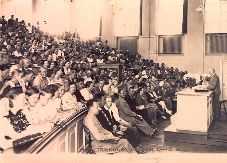 Üts sääne suvõkursuisi kotus oll’ Tarto. Täämbädse pildi pääl om nätä Eesti oppajidõ liidu tävvendüskursust Tarton 1938. aastaga põimukuun, lektor om Käisi Johannes.