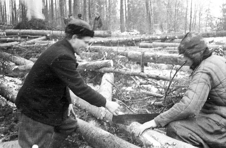 Täämbäne Nuti Villu tett pilt näütäs mõtsatöid 1960. aastil, a sama häste passis seo pilt kujotama, kuis tetti mõtsatöid Judeikini mõtsun.