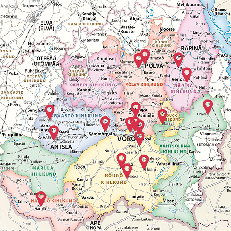 Kaardi pääl omma är märgitü keelepesärühmiga latsiaia. Regio Kaart, pilt Võro Instituudi kodolehe päält.
