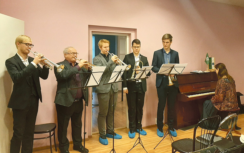 Otsa Aavo (kuralt tõnõ) üten ummi opilaisiga Tal’na Võro seldsin esinemän. Klavõri takan Aavo tütär Mai. Plumanni Kaja-Riina pilt