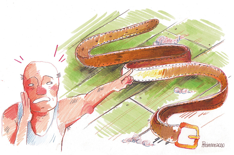 Oh tuud hirmu, mis Madis nägi. «Märt, võta ruttu põrmaduhari ja tulõ lüü maaha, siin diivani all omgi hindä rõngahe tõmmanu!» Märt tull’ pürstiga ja pand’ paugu rõngan olõva püksirihma pihta, mis oll’ kunagi ammu diivani ala sadanu. Hirmul omma jo suurõ silmä!