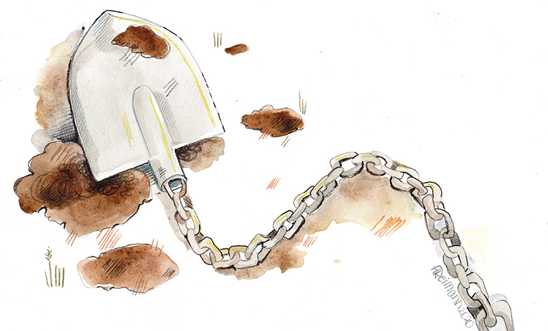 Ku peremiis tuu är näkse, oll’ vahtsõnõ plaan nigu varnast võtta: vaia puust lapjuvarrõ asõmalõ kett panda, kas sõs kah viil tüü aigu suiku saat!? Ja nii tettigi – varrõ asõmalõ panti kett.