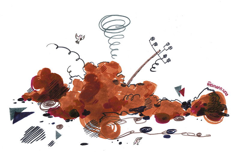 Tosinast traadist oll’ imekombõl terves jäänü ütsainukõnõ, mille külen rippu mõni pilbas, mis oll’ perrä jäänü tulbast. Tulp saisõ kah sääl saarõ pääl. Ega saarõstki es olõ midägi suurt perrä jäänü.