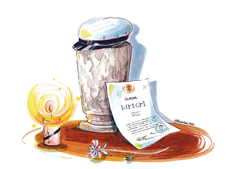 Kotus es olõ nal’ategemises külh paslik, a mul oll’ õks vaia umma ulli juttu aia. Ütli, et ärke pankõ mu musta huumorit pahas, a seo vällavaadõ olõki-i nii kehvä. Tõi näütüses hindä. Mul ülikooliharidust ei olõ, a ku ma pääle surma hinnäst tudõngilõ uuri anna, sis võtt tuu umbõs 3–5 aastat ja ku tuu, mis must perrä om jäänü, ütskõrd umatsilõ tagasi andas, sõs ei olõki tuu inämp kurb sündmüs, saa hoobis nigu ülikooli lõpupito pitä. Poolõ kaiva mullõ arvusaamalda otsa, a poolõ muigsi üteh.