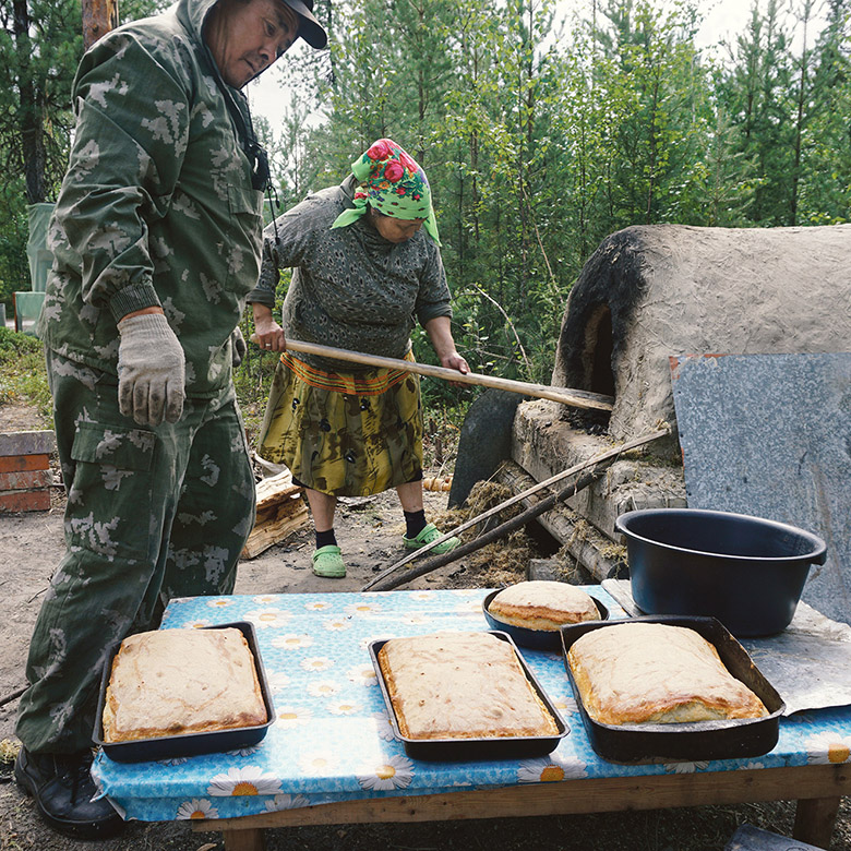 Pildi pääl tege laagrirahvalõ süvvä tädi Katja, kiä oll’ laagrin kokk. Meesterahvas pildi pääl oll’ nuuri filmilaagrin abimiis. Naulaneni Anti pilt
