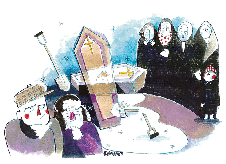 Hummogu süüdi inne kadonukõsõ välläsaatmist, sõs oll’ kirstupandminõ (leinatalitus). Pikäpääle jõudsõmi Vahtsõliina matusõ pääle. A oh hätä, miä sääl vasta vahtsõ! Haud oll’ kaibmalda. Koolnu panti sinnä kotsilõ maaha, kohe pidi matõtama.