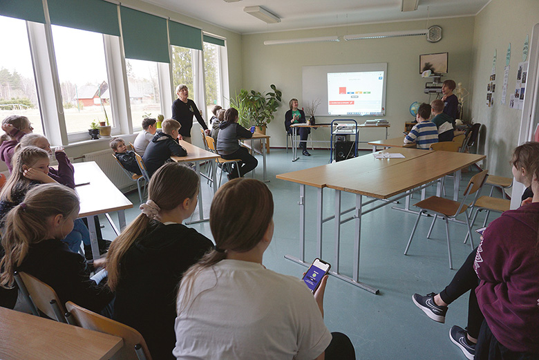 Mõnistõ kooli opilasõ võro keele ja kultuuri viktoriini tegemän. Toropi Heli pilt