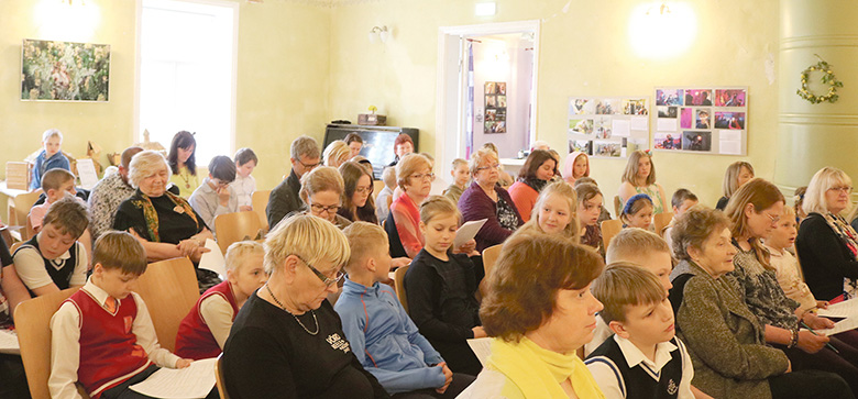 Võistlusõlõ tulnu latsõ, juhendaja ja muu huvilidsõ Sännä kultuurimõisa saalin. Rahmani Jani pilt
