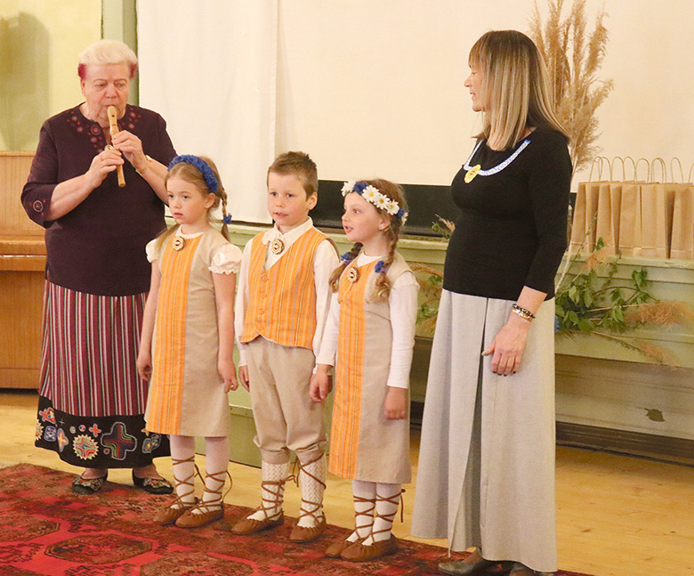Brianna Kõvatu, Ranar-Timo Valtu ja Brigitte-Eliise Piirimägi Sõlekese latsiaiast üten oppajidõ Lea Sika ja Maia Päevalillega. Rahmani Jani pilt