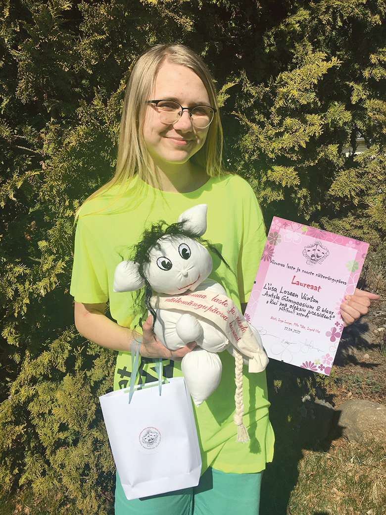 Antslast peri tsihikimmäs ja teküs nuur Värtoni Liisa Loreena tekk’ koolin luuvtüüs monoetendüse «Kui ma oleksin president». Näütemäng sai kõva huu sisse, täämbädses om tütrik tuud ette kandnu mitmõn paigan üle Võromaa ja ossa võtnu ka üleeestilidsest festivalist «Kooliteater 2022». Tükk om rahvalõ miildünü ja saanu parasjago tunnustust.