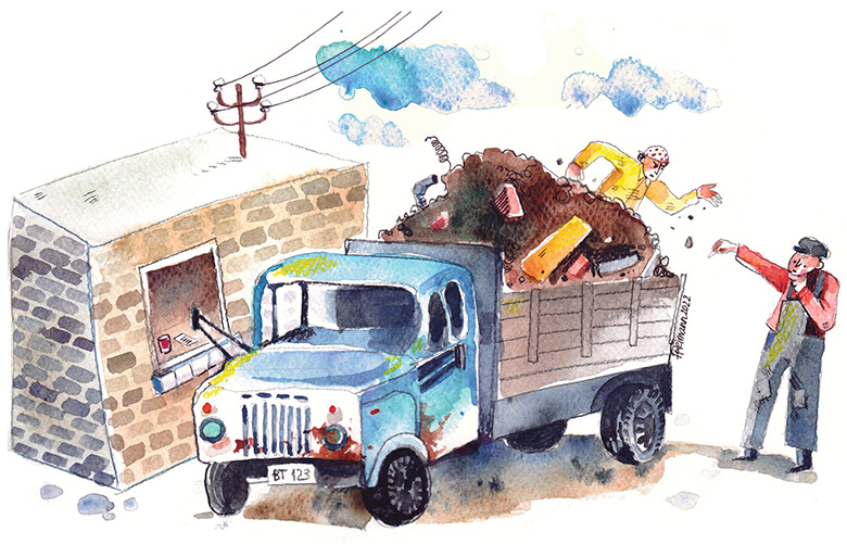 Taa lugu juhtu sis, ku Võro lihakombinaadi man määnestki vanna hoonõt maaha lahuti. Krusavikõga vinnati lahutut matõrjaali kombinaadi platsi päält är. A väretih oll’ jo kõgõ kiäki, kiä pidi kontrolma, et lihha vai muud hüäd-parõmbat vällä es viidänü.