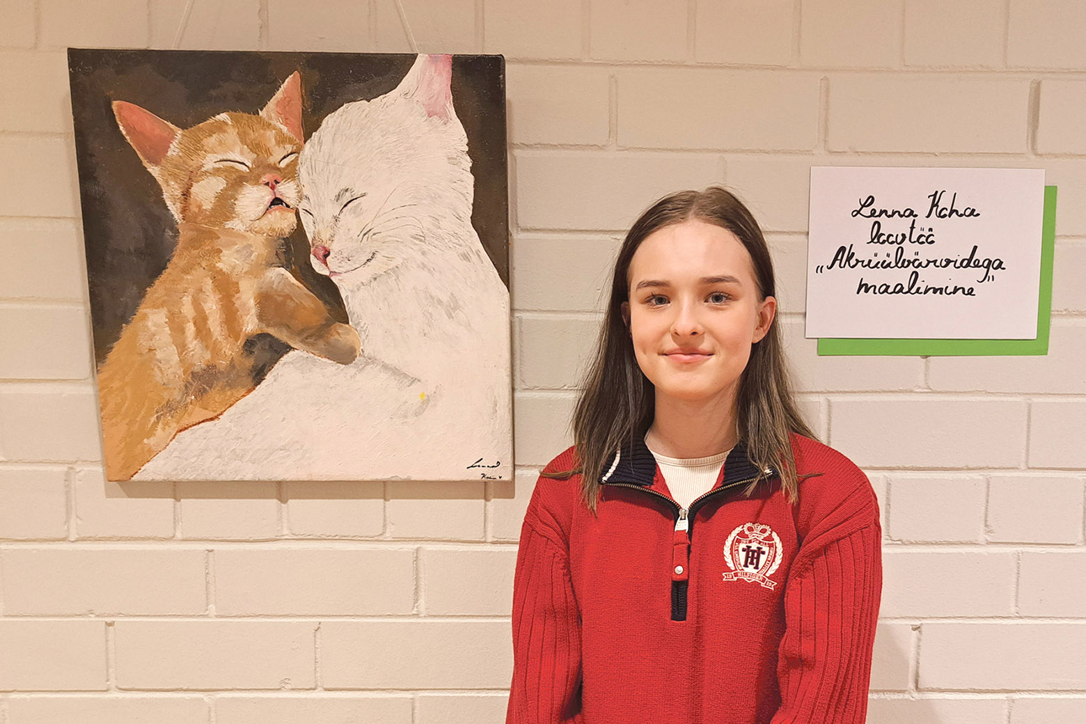 Parhillatsõs om Osolõ kooli fuajeen sainu pääl timä näütüs kassipiltest. Kokko om kooli sainu pääl kuus Lenna pilti, miä omma tettü akrüülvärvega. «Mu käest om hulga küsütü, mille ma valisi ummi maalõ teemas kassi, a määnestki esierälist põhjust ei olõki. Mullõ lihtsäle miildüse kassi ja ma tahtsõ oppi näid parõmbalõ joonistama,» ütles Lenna.
