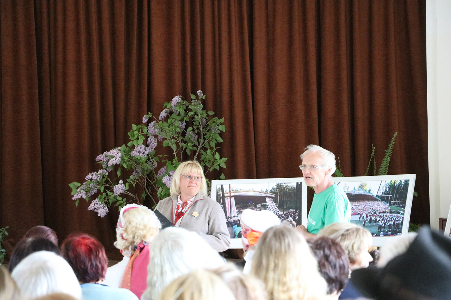 Pildi pääl pidä ettekannõt Uma Pido pääkõrraldaja Tigasõ Merike ja timä juttu pand läti kiilde Korneti miis Prangli Jaan.