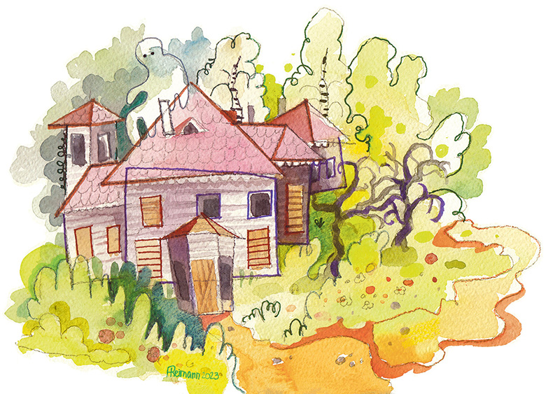 Nii ma tei ja mõtlõ, et vast sai maja vaim ja siin elänü inemiisi vaimu uma rahu. Mul hindäl läts’ maja vaimuga üttesaamisõs niisama uma aig. Olõ-õi lihtsä saia nii müstilidse maja ja timä vaimuga hää pääle. Nüüd om päält sata aastat vanah jahilossih jälki elo ja seenimaani om egä inemine, kinka kõnõlõ, ütelnü, et nimä omma mi lossist unistanu ja tahtnu seod hindäle. Mis tuu tetä, saatus pandsõ kõik paika. «Hurtsikust» om saanu mi pere loss, ja mi tahami uma kodo vaimu(õ) hoita! Umalõ kodolõ anna avvu!