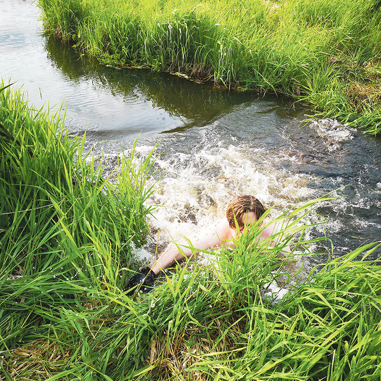 Üts suurõmbit ni kahtlasõmbit kotussit, kost läbipäsemine es olõ sukugi kimmäs ega inne läbi testitü, oll’ Antsla jõgi. Kotusõpääline miis, kedä inne jõõkonnu pääle jõudmist näimi, kõnõl’, et siist mi külh läbi ei saa, minku mi no ummõtõ tiid pite. A mi iks tahtsõmi umma õgõvjuunt saia ni lätsimi uurma, mis värk om. Tuu om sääne andsak jõgi, mis om õnnõ kats miitret lagja, a mõnõ kotusõ pääl ka sama pall’o sükäv, nii et jalaga läbi ei saa. Mõtlimi ja passõmi sääl tükk aigu, miä nüüt saa, kas Antsla jõgi lõpõtas mi retke, kas ikk valla ja kodo minek. Peräkõrd otsustimi, et kõgõ parõmb om rõiva säläst aia ni üle ujjo, säläkoti saa üle visada. Nii mi teimiki ja peräst oll’ võitja tunnõ, ku viil kuiva suka kah jalga saimi ja tii edesi läts’. Õnnõ et tuu jandi pääle läts’ meil tunn aigu. Kell oll’ joba viis õdaguspoolõ ja puul tiid viil iin. Edesi läts’ tii virka kooni Lambahanna ujani, kost jalg inämb sukugi es nõsõ läbi sumpama. Lätsimi üle truuba, et hindä tervüst ja tii kiirust alalõ hoita. Tuu jäie rohkõmb ku 25 miitret jutist kõrvalõ, nii et sääl paigan kuuli ka õgõvjoonõmatk.