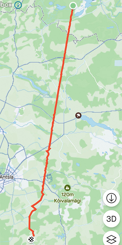 Naksimi katõkõisi astma hummogu kümne aol, varasuvidsõ pääväkuuma kottalõ pall’o paksult rõivin, et hinnäst kihulaisi iist kaitsa. Ütest telefonist kaimi kõik aig kaarti ja salvõstimi äpiga tultut tiikunda, tõsõga teimi pilte. Hindä jaos säädsemi riigli, et joonõst või kõrvalõ minnä kõgõ rohkõmb 25 meetrit, et inämb-vähämb õgõvjuun meist perrä jäänü.