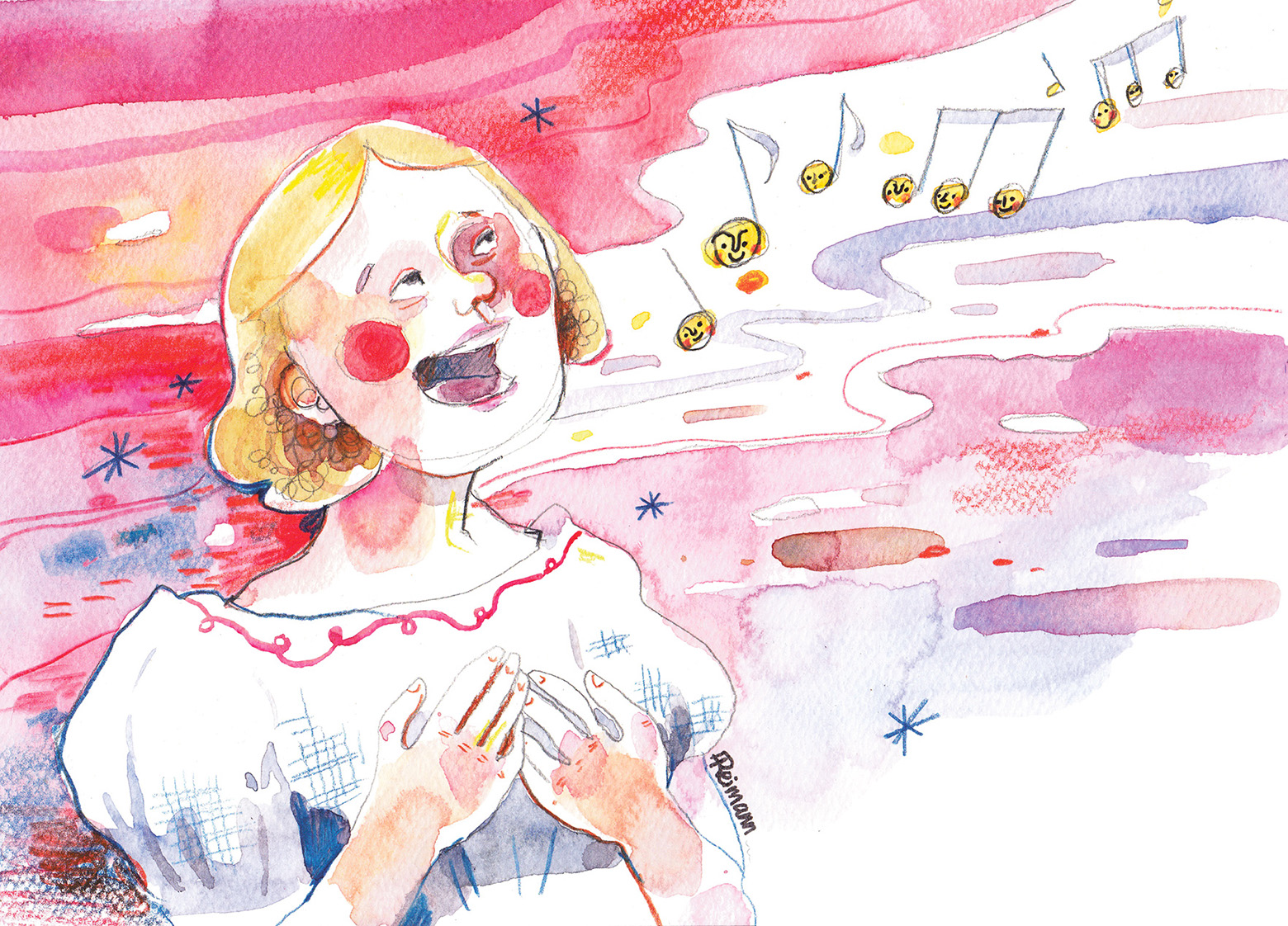 Nii läts’ kah. Ku Ruusmäel Rogosi mõisamajan koolin käve, oll’ muusika ja laul kõik aig mu ümbre. Käve koorilaulun, mängse mandoliini, puhkpilliorkestrin alti ja trompetit. Kuna mul om sündümisest saadik krutskigeen kah üten antu, sis ütskõrd koorilaulu proovin naksi vigurit tegemä, mille pääle terve kuur suurõ helüga naarma nakas’ ja oppajat es kae inämb kiäki. Tuu pääle saadõti minno tõõsõ korrusõ trepinukka «elo üle perrä mõtlõma».