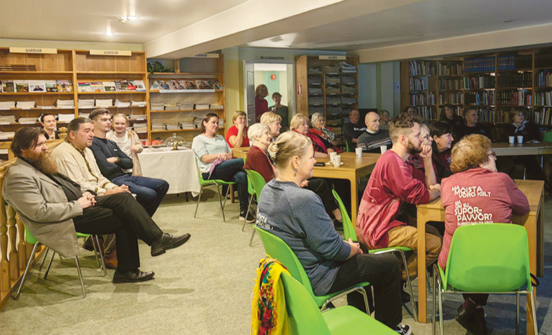 Põlva keskraamadukokko oll’ Mamastõ miis Kaha Kaido kokko kutsnu hulga võro keele iistkõnõlõjit ja muid juttu ajama ja kontsõrti kullõma. Toomõ Triinu pilt