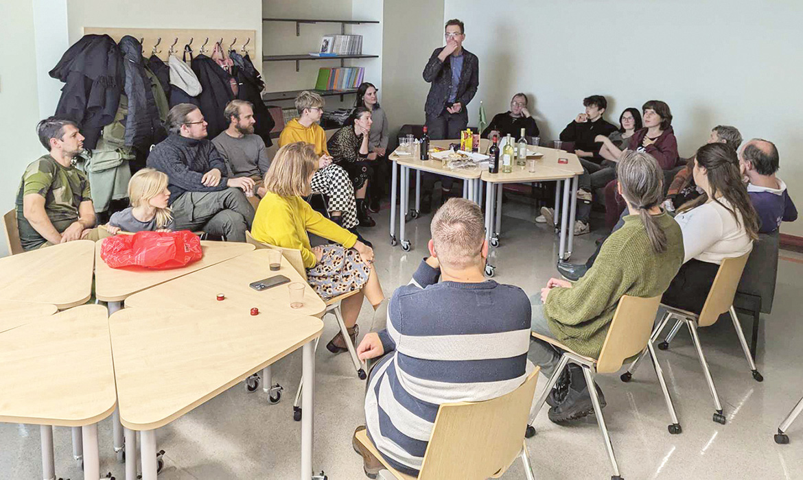 Tarton tulli tudõngi-nal’ahamba kokko võro keele kohvikulõ. Ütenkuun filosofeeriti, rüübäti veini ja arotõdi, kuimuudu võinu noorõmb rahvas inämb võro kiilt pruuki. Saarõ Hipõ pilt