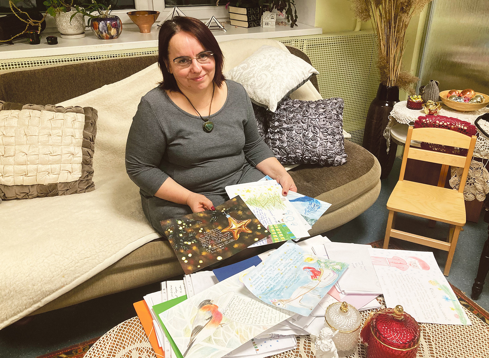 MTÜ Saagu Parem iistvõtja Haljendi Piret latsi soovikirju sortman. Kabuna Kaile pilt