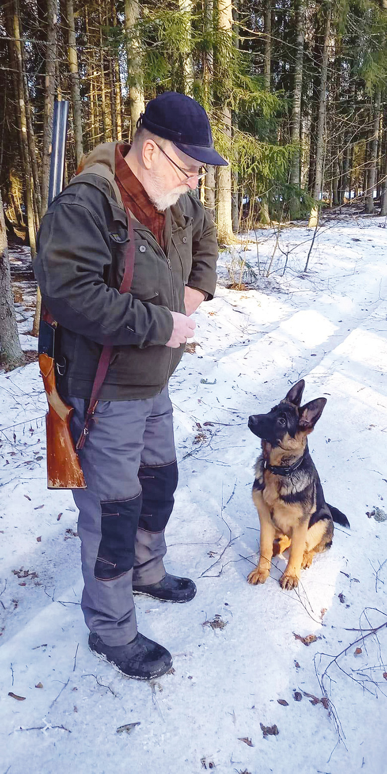 Seo pildi pääl lätt peremiis pinikutsikat pauguga har’otama. Nüüt om kutsikust kasunu joba poolõtõsõ-aastanõ illos pini. Pilt Rohu Urmasõ eräkogost.