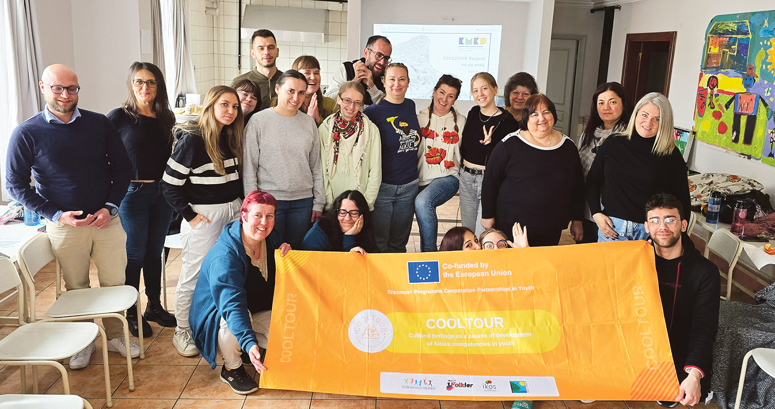 Nelä riigi noorõ ja nuuritüütäjä, mi vastavõtja, Istanbuli kultuuri ja spordi ütisüse IKOS tarõn CoolTouri plakatiga posiirmän. Laube Kadri pilt