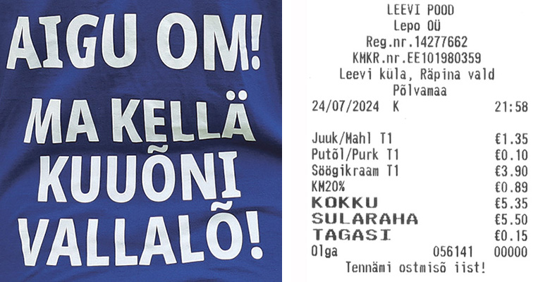 Leevi poodi müüjil omma sälän esisugumaidsi uman keelen kirjuga hammõ ja poodi kassatšeki pääl om kinäste umma kiilt tarvitõt.
