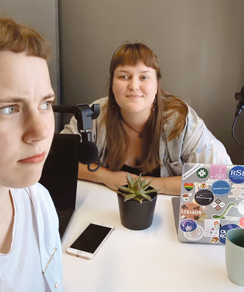 Karmanihelü tegijä Raju Eliisabet ja Saarõ Hipp stuudion. Pilt videost
