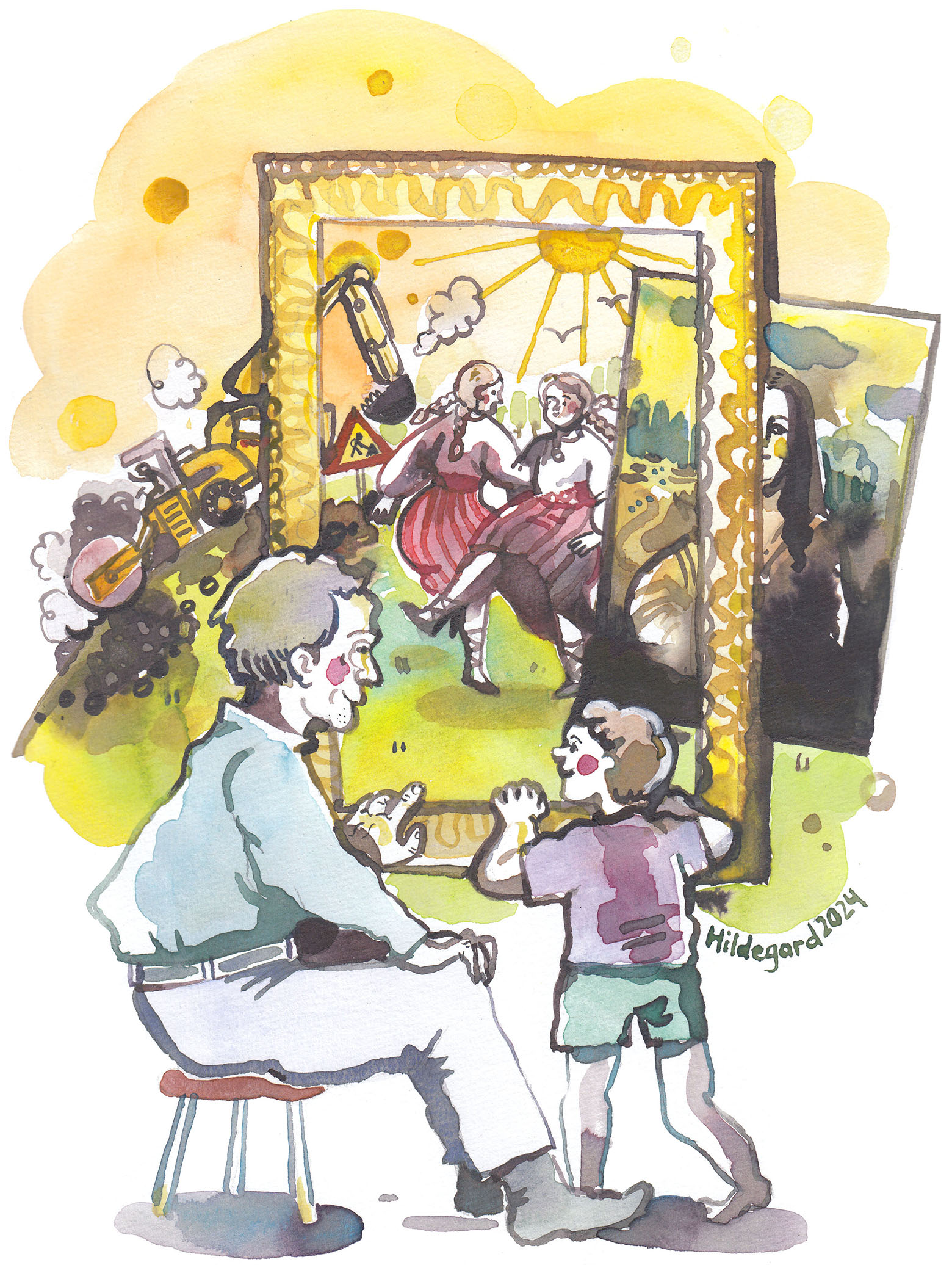 Kunst om mi ümbre egä päiv ja egäl puul. Sis, ku veidükese laembalt mõtõlda. Ei taso kitsalõ kinni jäiä ahtahe ruumi, et kunst om inne kuulsa kunstnigu pintsliga maalitu, kõvastõ valvõ alla võetu raami sisse pantu naaratav Mona Lisa. Kunst om raami seeh ja raamist väläh, raami iih ja raami takah.