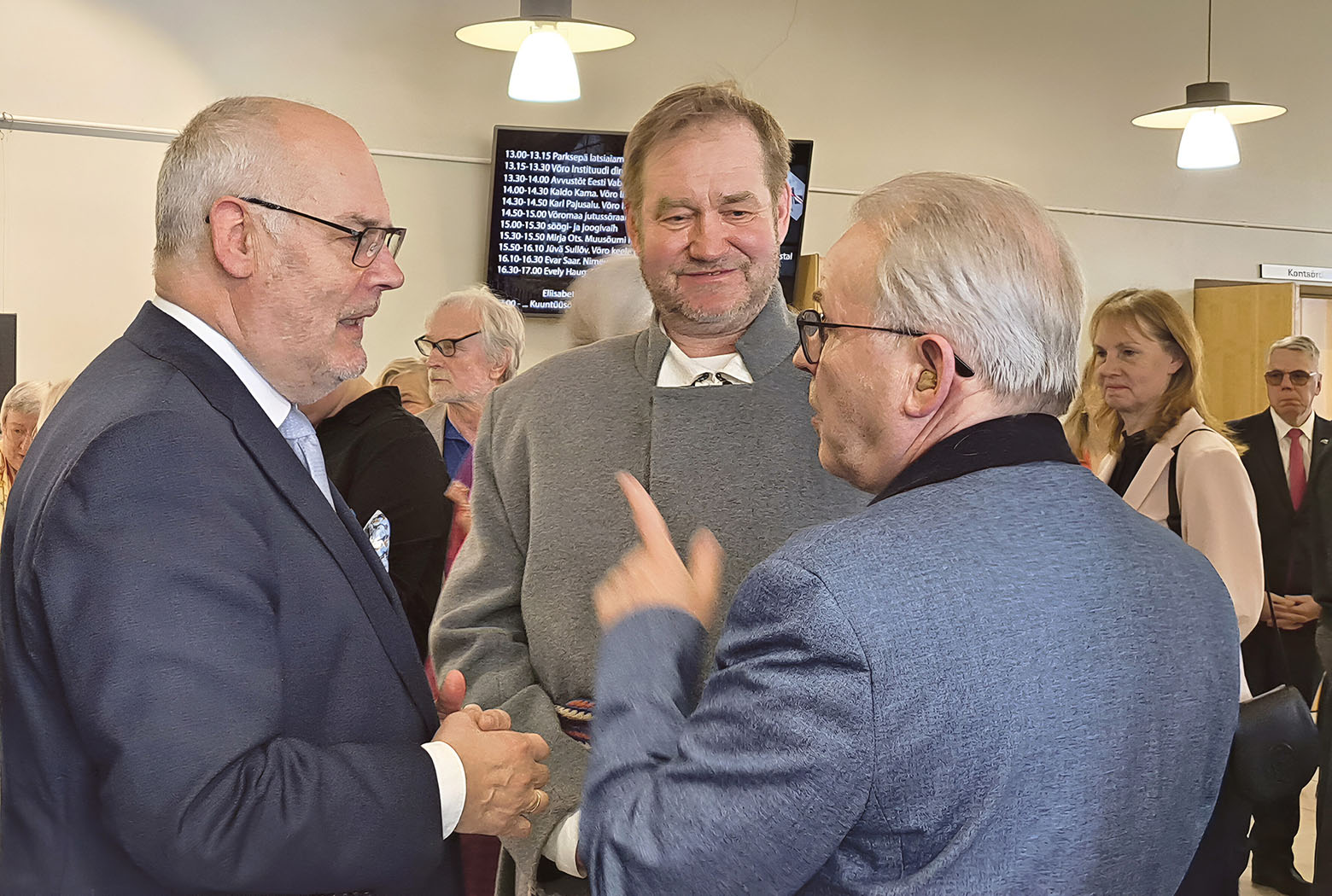 Jutuhuun omma Eesti Vabariigi president Karisõ Alar, Võro instituudi direktri Padari Ivari ja Kandlõ kultuurimaja juht Kelbä Heiki. Rahmani Elo pildi
