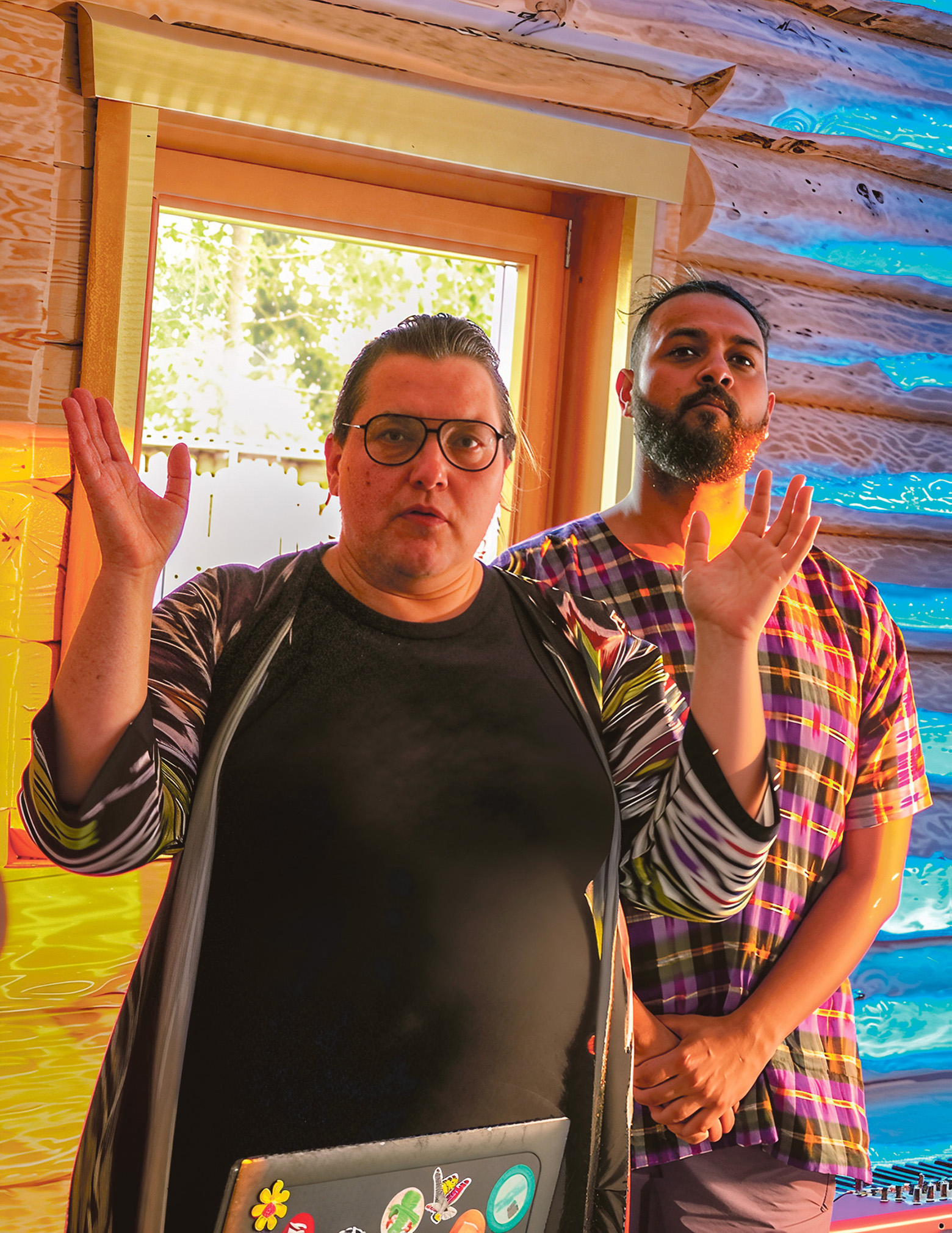 Filmitegijä Hintsi Anna ja Prakashi Tushar filmijuttu ajaman. Rahmani Jani pilt