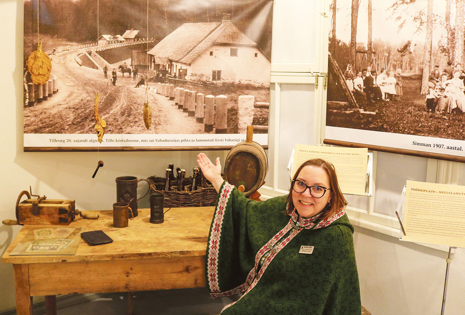 Karilatsi muusõumipedagoog Luude Marge huuaonäütüst näütämän. Rahmani Jani pilt