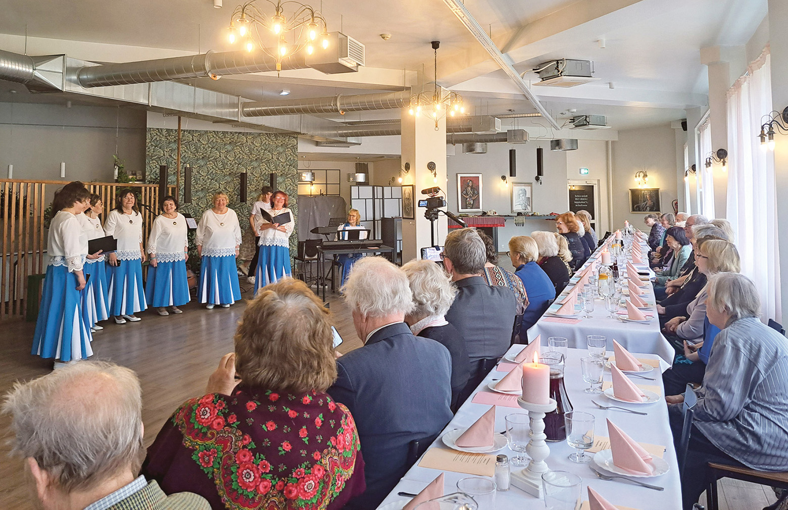 Lauluansambli Liiso seldsi sünnüpääväpidol üles astman. Rahmani Elo pilt