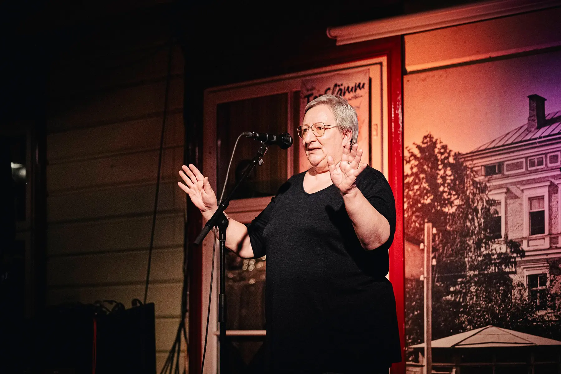 Hinnäst olli üles andnu ütessä inemist ja seltskund oll’ peris kirriv. Oll’ säändsit, kiä kaiva nutitelefonist vai raamatust kõik aig perrä, miä edesi tulõ, a oll’ inemiisi, kiä olli uma teksti kokko pandnu pistüjalatiatri põhimõttõga: vaihtõpääl om hallõ, a sõs käändäs tuu hallõ ilmlõpmalda nal’alidsõs ja pääle taad naatas jälki tuu hallõ jutuga pääle.
